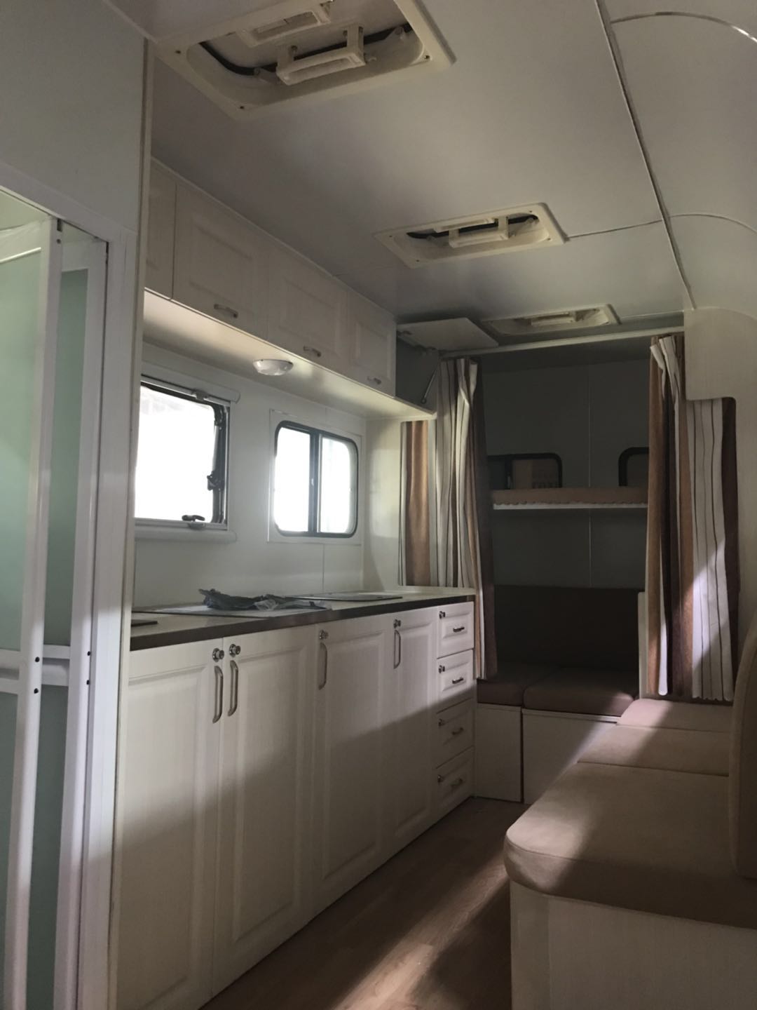 車內寬敞而豪華,具備各種家具、車載家用電器、儲存柜、桌椅沙發等,面積一般可達40平米左右,洗碗機、全自動洗衣機、烘干機、房車專用水箱、整體浴室、衛星天線、暖冷系統、網絡系統、電話機、傳真機、GPS、視聽娛樂設備、倒車監視系統、防撞車警報系統、安全報警系統、我游房車將其分類等應有盡有。